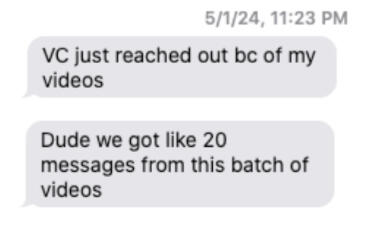 2. I love film & entrepreneurshipI started a video production business right out of high school.During this 8 year experience, I created 2000+ videos for founders, hit 20M LI impressions in 1 year & filmed multiple documentaries that took me to the wildest places (such as inches behind El Salvadorian President Bukele during his victory speech.The crazy part?I attracted all these opportunities through my personal brand & content. No outbound.Now I'm helping select founders & executives create personal brands that close deals & open doors.I take the same psychological & emotional principles behind what makes people think, feel & act and direct your personal brand like a film.